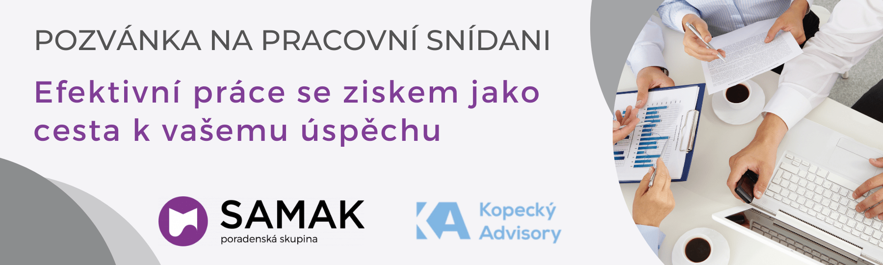 dovolte nám Vás pozvat na snídaňové setkání s tématem „Efektivní práce se ziskem jako cesta k vašemu úspěchu„, pořádané Krajskou hospodářskou komorou Královehradeckého kraje, členskou společností Kopecký Advisory s.r.o. a poradenskou skupinou SAMAK.