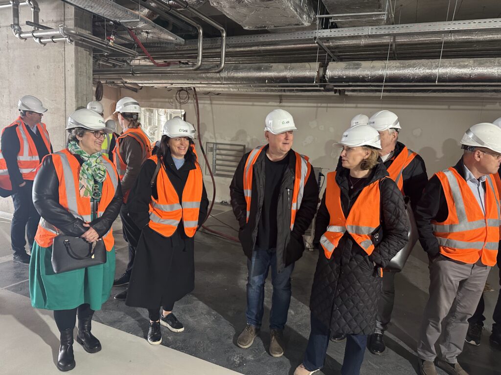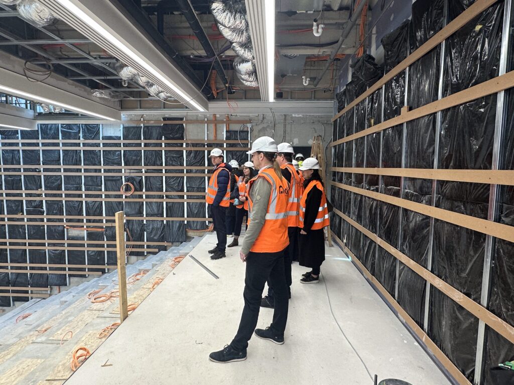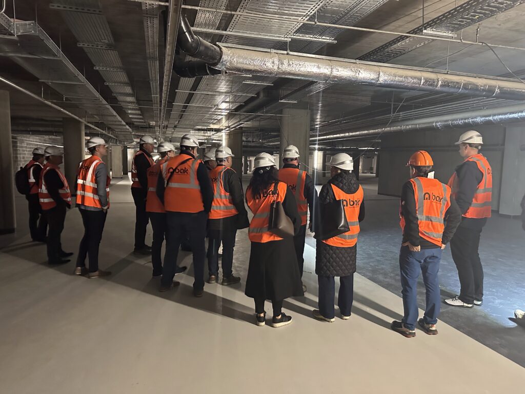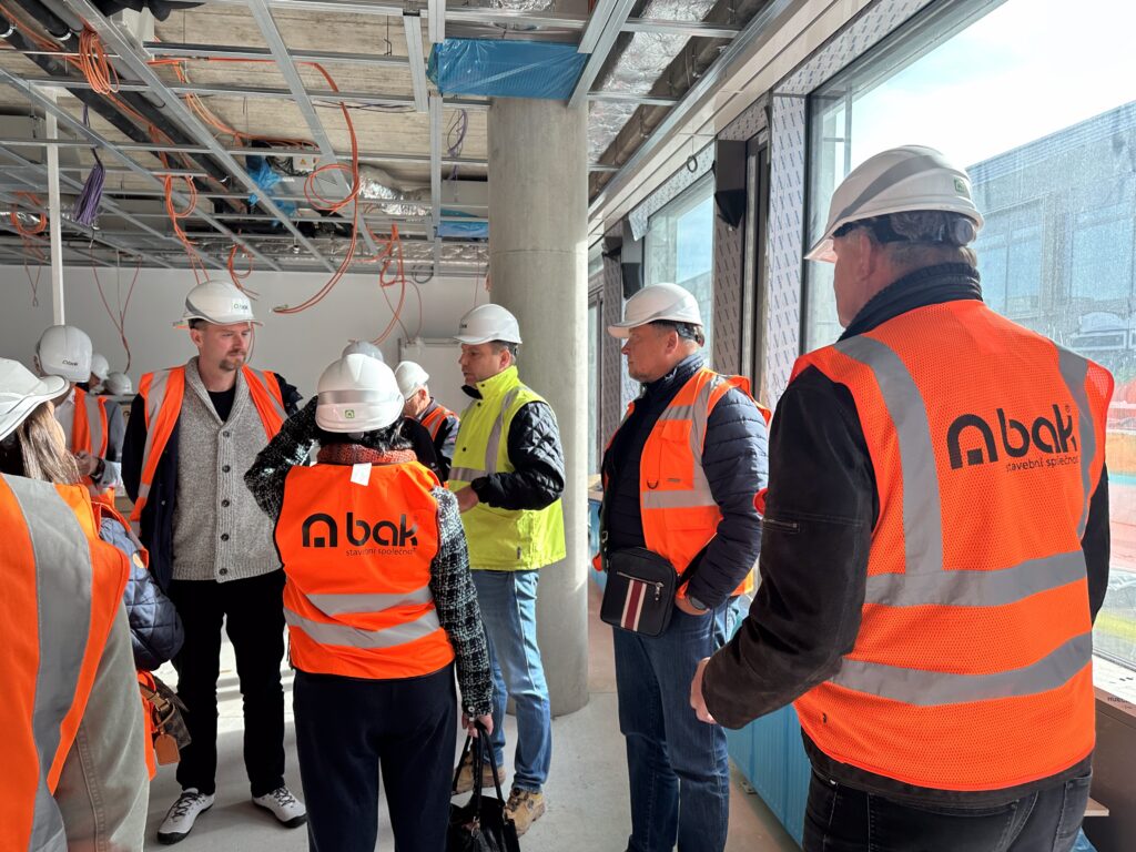 Následovala komentovaná prohlídka staveniště, kde si účastníci prošli prostory budoucích učeben, laboratoří i zázemí pro zaměstnance. Prosklené stěny nabídly výhledy, které se stanou součástí každodenního života akademické komunity.
